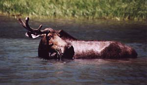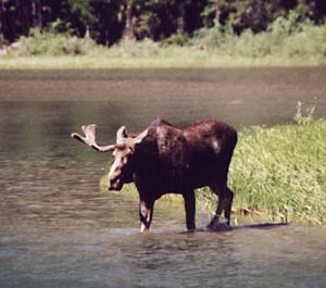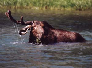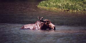 This may look like a real moose, but it's only half a moose. It's left antler seems to be missing. Maybe this is one of those half-male/half-female moose we've been hearing about.