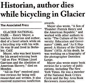 The newspaper article is from The Daily Inter Lake from Kalispell, Montana, vol. 93, no. 105, dated Friday, July 28, 2000. The photo was taken from the Library of Congress web page https://www.loc.gov/loc/lcib/9812/cfb.html.