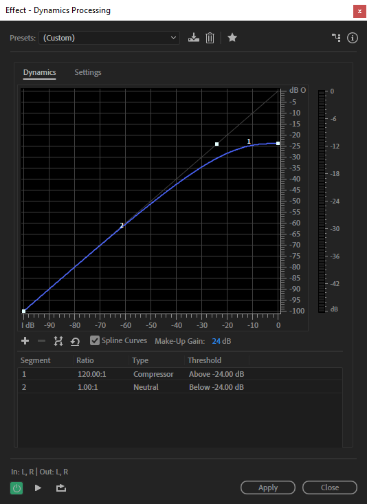 Then I added a 24 dB Make-Up Gain to boost the amplitude.