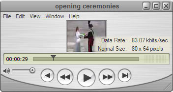 I ended up with an 80x64 video. You can fit 16 of these in a 320x240 screen. The sound quality was horrible, too.